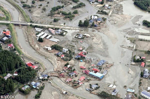 據日本國土交通省數據,在7個縣55條河流確認了79處堤壩決口。塌方等地質災害在19個都縣達到199起。受災有可能進一步擴大。