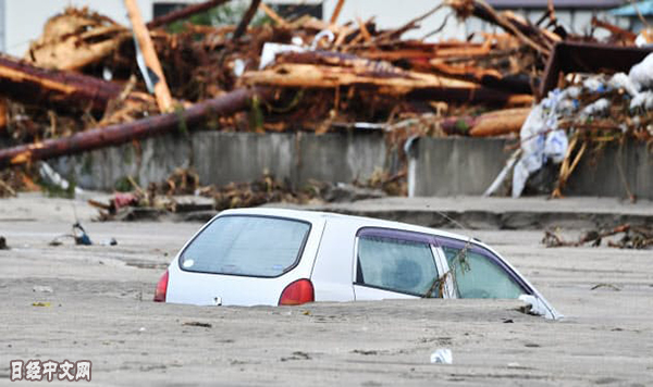 | 因19號颱風被埋在淤泥中的汽車(10月19日,宮城縣丸森町) |