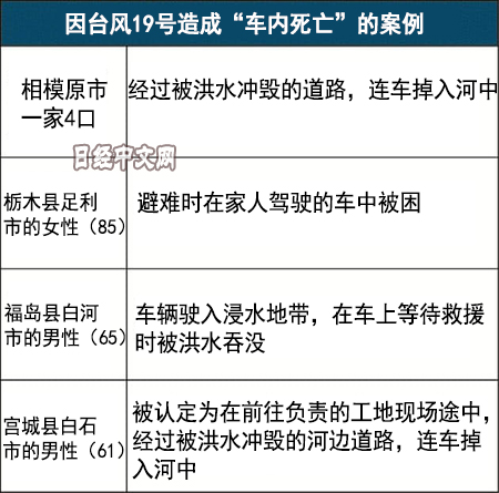 日本19號颱風遇難者中3成死於車內