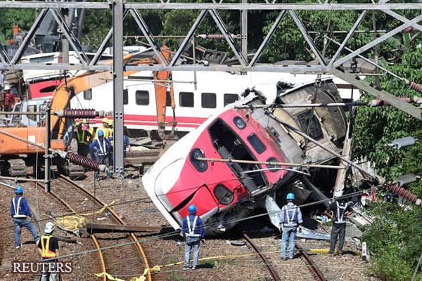| 台灣特快列車脫軌事故現場(reuters) |