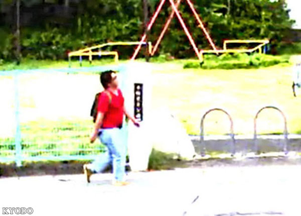 京阿尼總部附近的監視攝像頭拍到的疑似青葉的人物(7月,kyodo) |