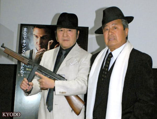 | 2013年4月,在黑幫電影的宣傳活動上現身的松方弘樹(左)與梅宮辰夫(東京都內)(kyodo) |