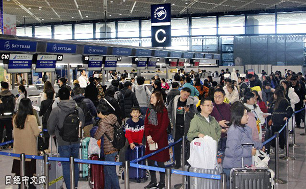 | 年末出國高峰的成田機場出發大廳 |