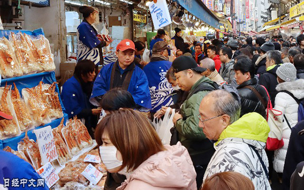 | 人們在東京AMEYOKO商店街購買年末年初的食材 |