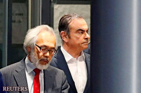 | 獲得保釋後走出東京拘留所的戈恩(2019年4月,Reuters) |