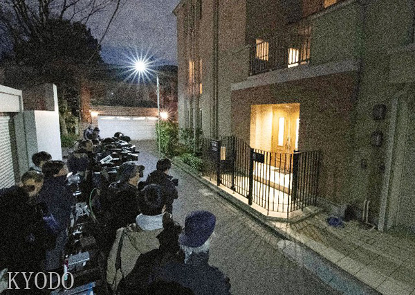 | 1月2日晚間等候在戈恩東京住宅周圍的媒體人士(kyodo) |