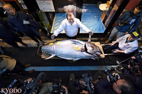 拍出最高價的是1條276公斤的大鮪魚。儘管未能達到上年的歷史最高價,但自有記錄的1999年之後,達到了史上第二高價。這條鮪魚將被端上「壽司三昧」總店的餐桌。
