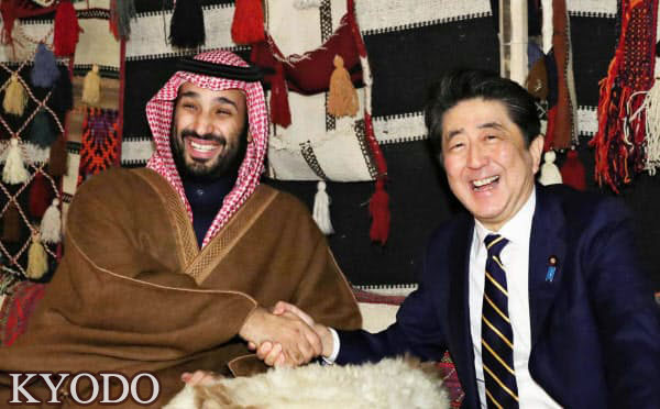 日本首相安倍晉三於北京時間1月13日淩晨在歐拉郊外與沙烏地阿拉伯事實上的領導人、王儲穆罕默德·本·薩勒曼舉行了會談。雙方針對因美國與伊朗的對立而日趨緊張的中東局勢展開磋商,一致同意相關國家應當為緩解緊張局勢而集中力量。雙方還針對確保民間船舶的航行安全,確認展開合作。