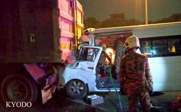 | 桃田等人乘坐的事故車輛(13日,吉隆坡近郊,馬來西亞消防部門提供,kyodo) |