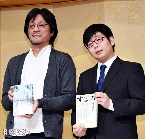| 獲得直木獎的川越氏(左)和獲得芥川獎的古川(15日,東京都千代田區) |