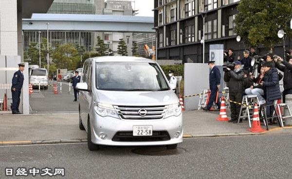 汽車載著槙原敬之從東京灣岸警署出發,將其移送檢方(2月14日上午8點47分,KYODO) |