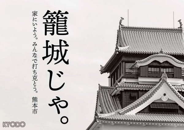 「請大家待在家(Stay Home)。要是加藤清正(編者注:建造熊本城的熊本藩主)在世的話,估計也會説‘堅守城池,閉門不出’」,日本熊本市的市長大西一史日前在推特上發佈了熊本城的照片和呼籲民眾避免外出的海報圖片,引發了熱議。為宣傳抗疫,與熊本有淵源的攝影師們製作了海報,並無償提供給該市。
