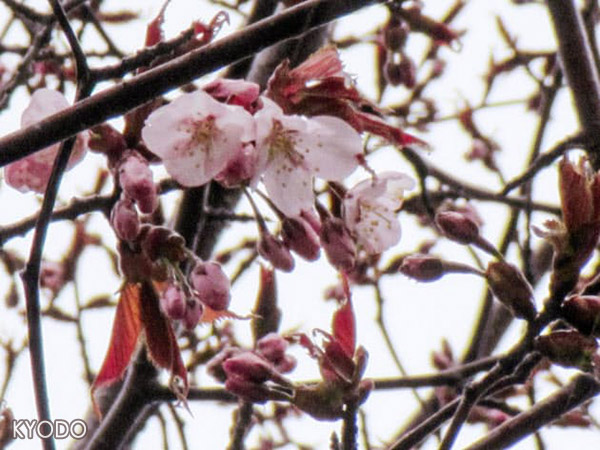 | 北海道稚內市的櫻花(5月10日,照片由稚內氣象臺提供,KYODO) |