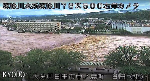 大分縣日田市的築後川氾濫,福岡管區氣象臺和日本國土交通省7月7日上午8時35分發佈了「氾濫發生」資訊。這一資訊相當於日本大雨和洪水警戒水準中最高的五級。