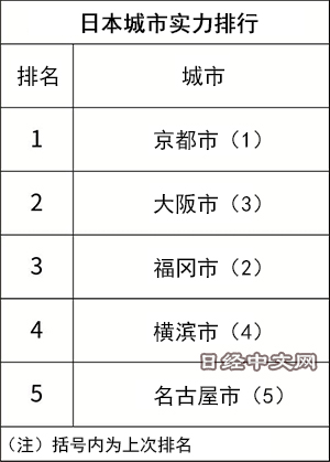 日本森大廈株式會社旗下的智庫森紀念財團都市戰略研究所日前發佈了以經濟實力和宜居性等指標評估日本國內城市的「城市實力」排行榜。在不含東京23區的109個城市中,京都市連續3年排在首位。大阪市超過福岡市,升至第2。