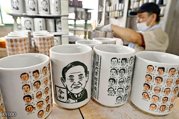 此外,在岐阜縣土岐市,隨著菅義偉當選首相,商家全面開始生産繪有歷代日本首相卡通畫像的杯子。