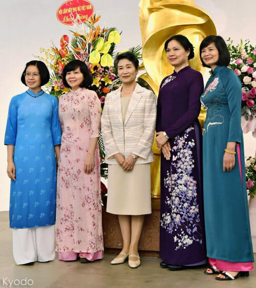 | 真理子夫人(中)隨同菅義偉前往越南訪問(10月19日,Kyodo) |
