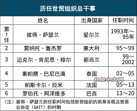 世貿組織在28日的會議上發佈了最終評選的調查結果。針對奧孔喬-伊韋阿拉表示,「獲得已開發國家和發展中國家的廣泛支援」,表明了推薦為下一任總幹事的意向。日本、中國和歐盟也表示贊同。