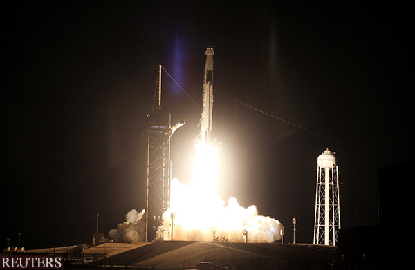 | 大型火箭「Falcon 9」將龍飛船發射升空(2020年11月15日,美國甘迺迪航太中心,REUTERS) |