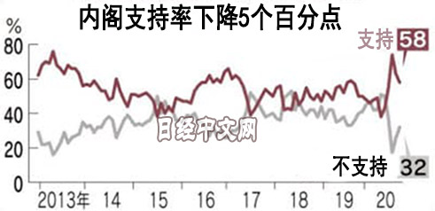 菅義偉內閣支持率降至58%